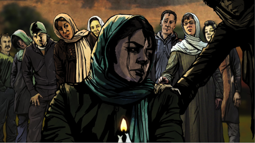 Kazma), a 4-channel installation, making disturbing visual parallels between